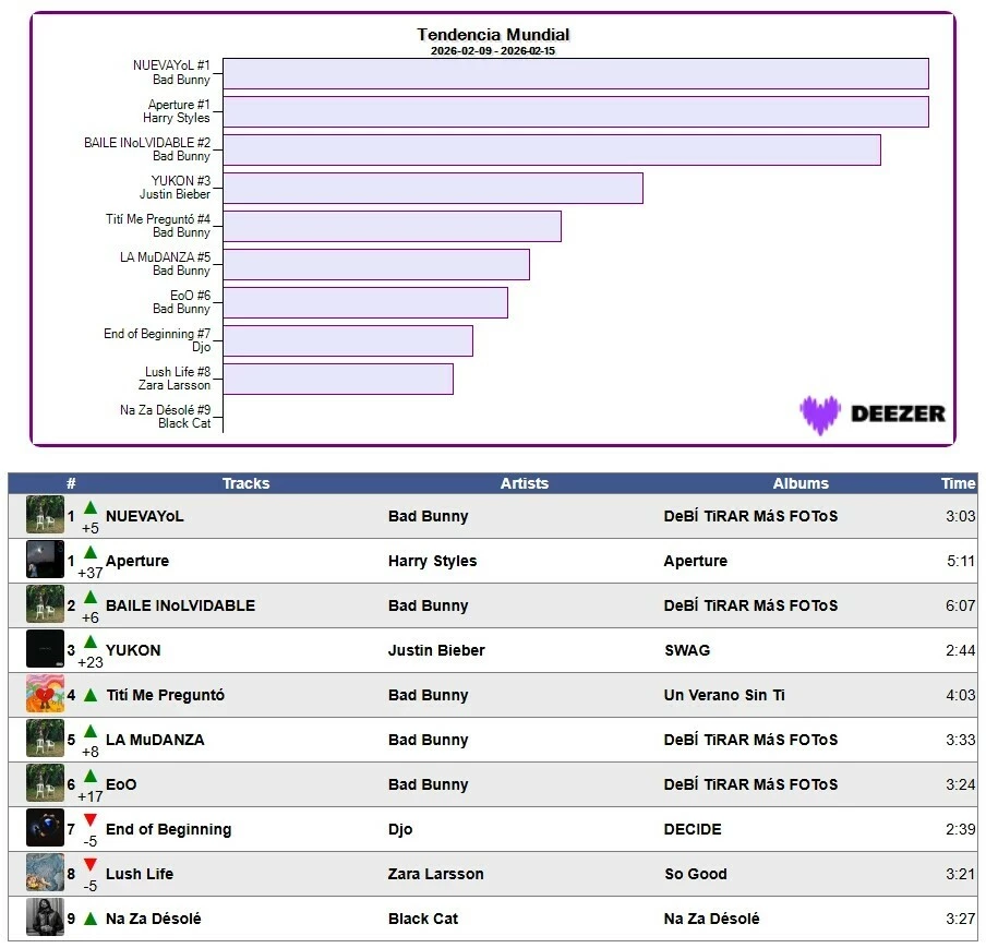 📊 Análisis de canciones n. 10 Tendencia Mundial en Deezer 🌍 Semana 7/2026