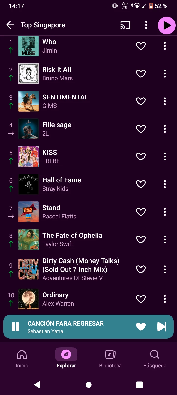 📊 Análisis de canciones n. 21 Chart de Singapur 🇸🇬 16/marzo/2026