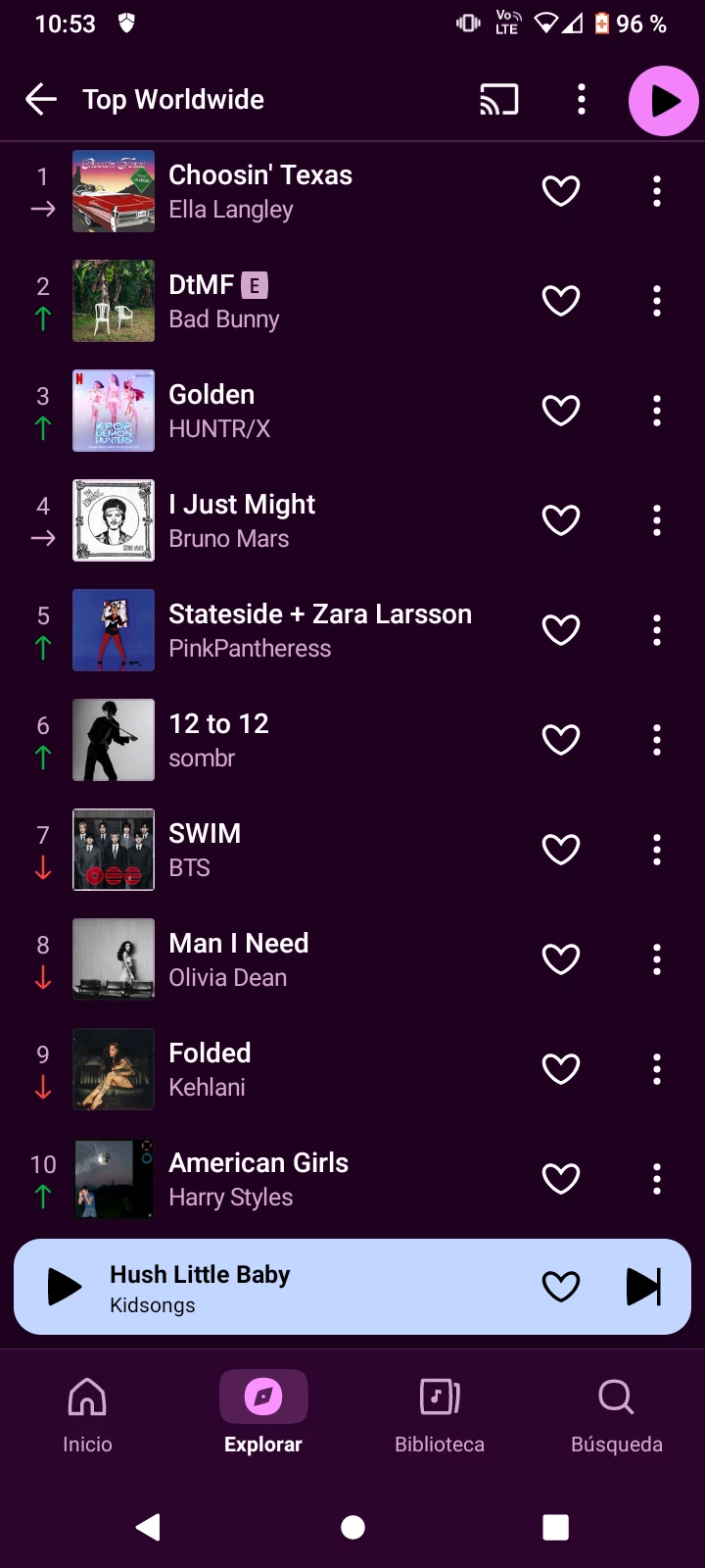 Todas las canciones se han repetido en comparación a la semana pasada. Igualmente este chart es una gran aporte a mi conocimiento musical.