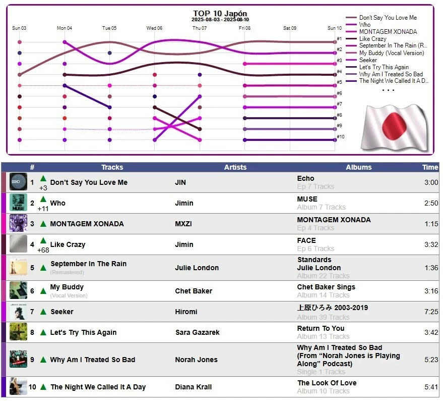 📊 Análisis de canciones n. 34 Chart de Japón 🇯🇵 11/agosto/2025