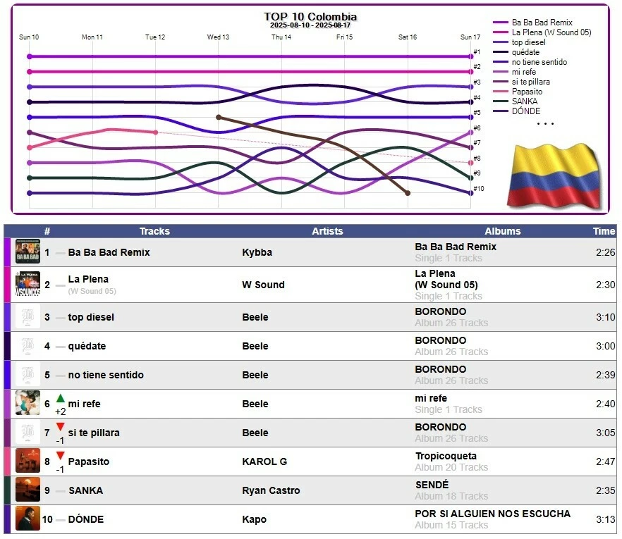 📊 Análisis de canciones n. 36 Chart de Colombia 🇨🇴 18/agosto/2025