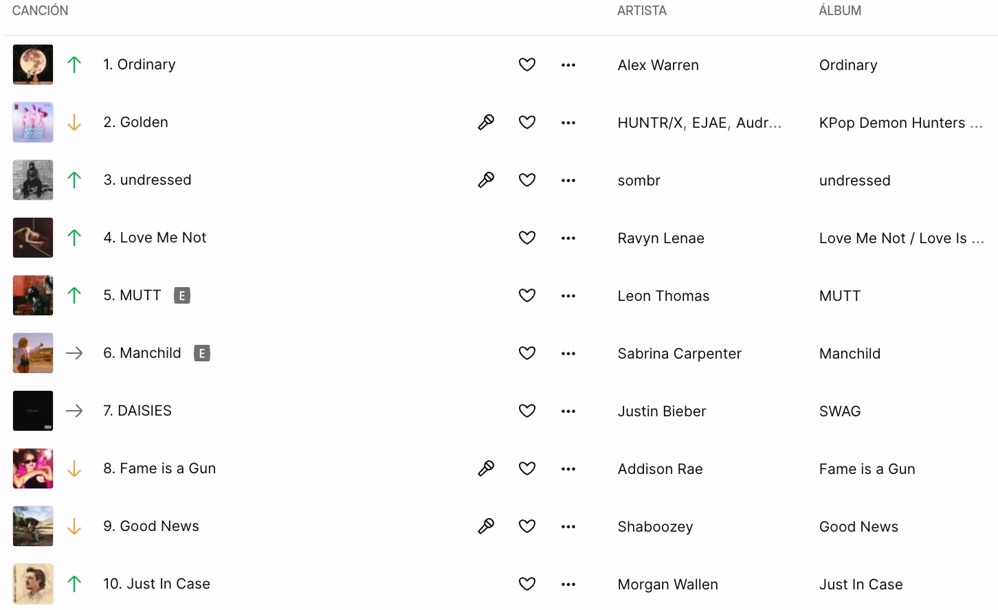 Yo de este chart me quedo con la canción de Leon. Me gustó mucho. ​@Alfredo.Deezer 😊🤗😊🤗😊