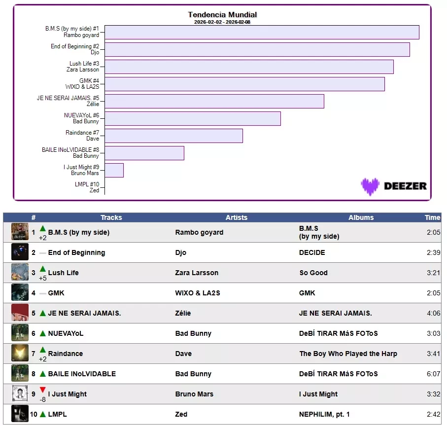 📊 Análisis de canciones n. 7 Tendencia Mundial en Deezer 🌍 Semana 6/2026