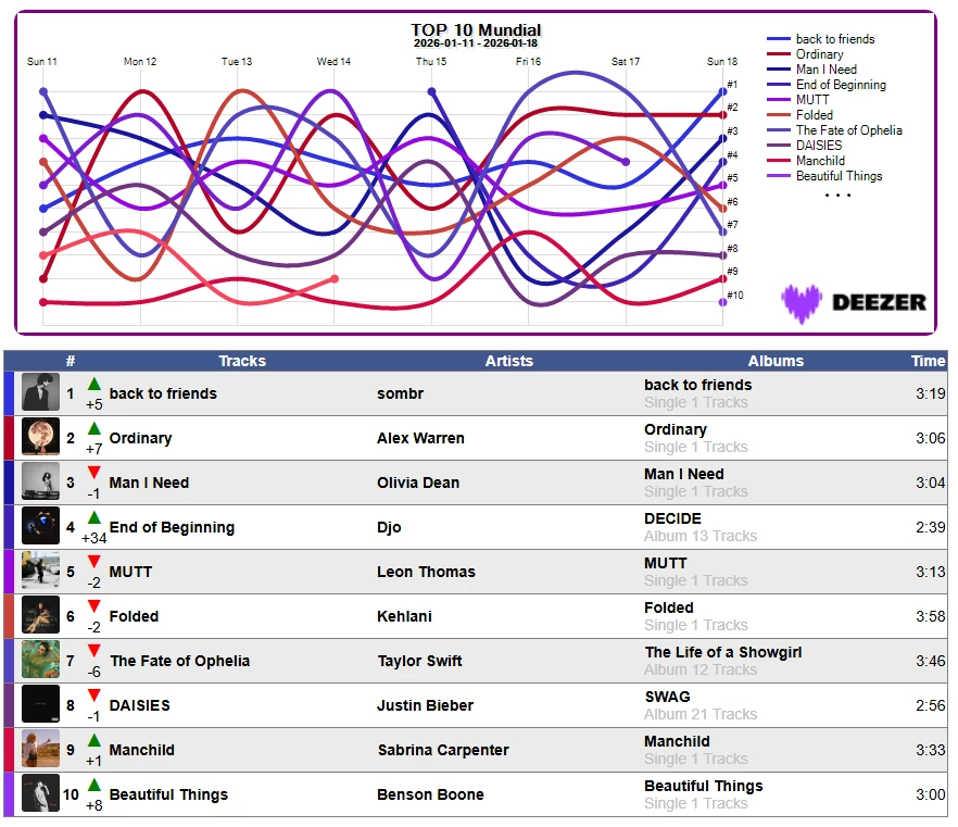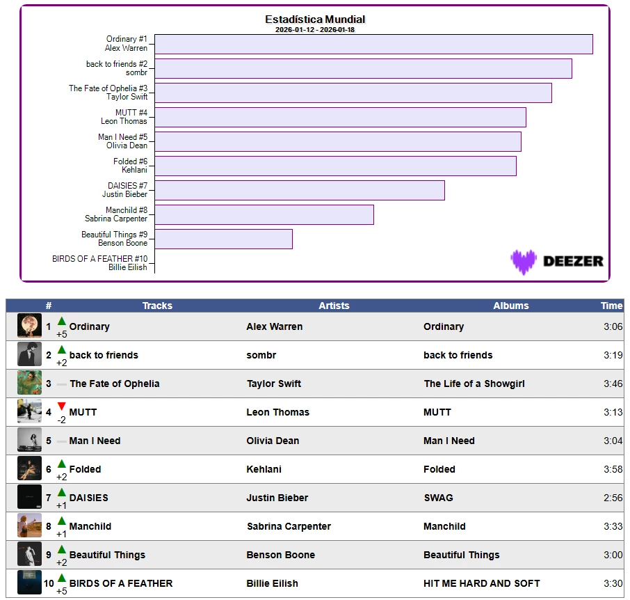 📈🏆 Estadística Mundial en Deezer Semana 3/2026 📈18/01/2026