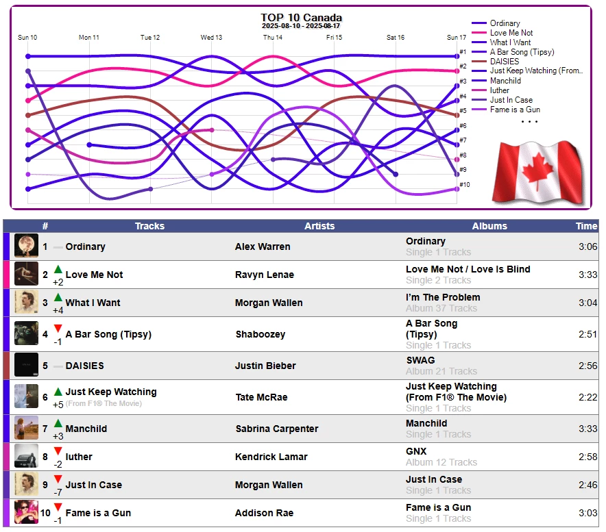#3   DAISIES - Justin Bieber
