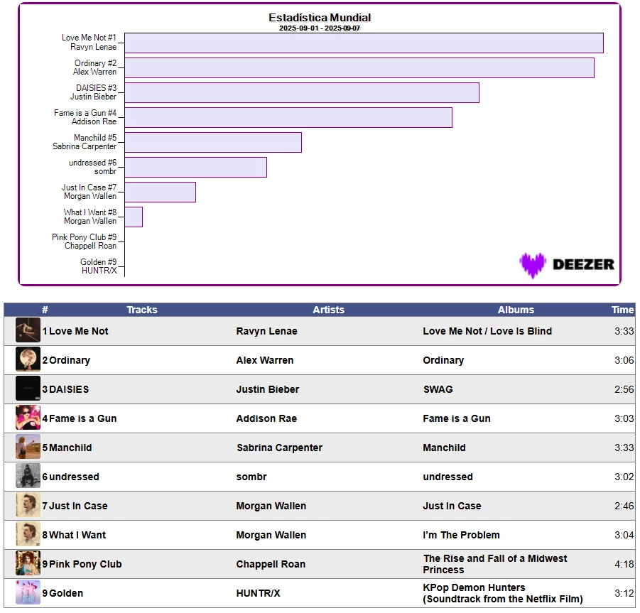 📈🏆 Estadística Mundial en Deezer Semana 36/2025 📈 7/Septiembre/2025