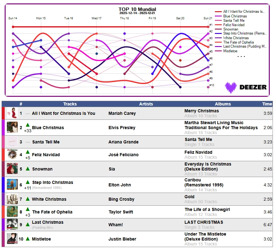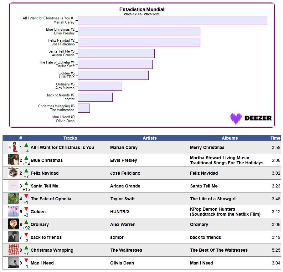 📈🏆 Estadística Mundial en Deezer Semana 51/2025 📈21/12/2025