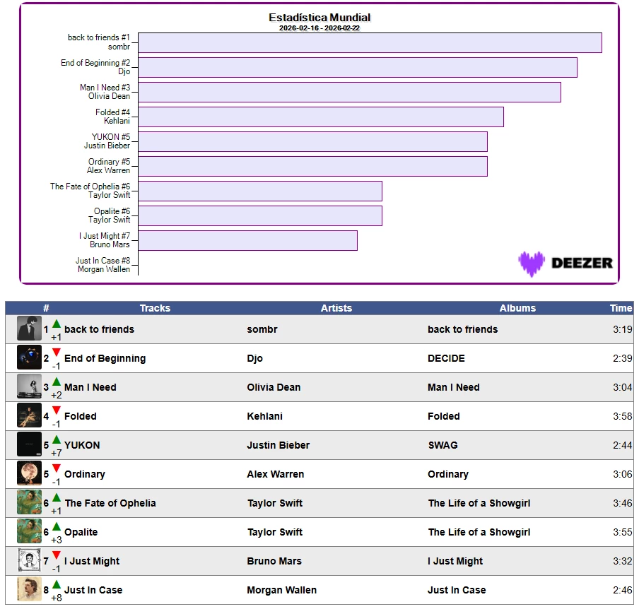 📈🏆 Estadística Mundial en Deezer Semana 8/2026 📈22/02/2026