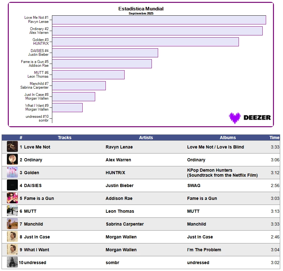 📈🏆 Estadística Mundial en Deezer Septiembre 2025 📈