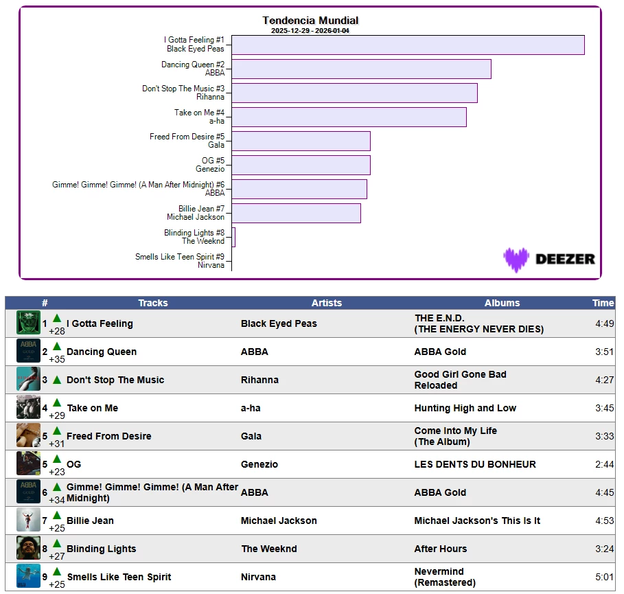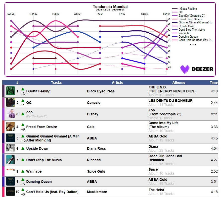 📈👉 Tendencia Mundial en Deezer Semana 1/2026 📈04/01/2026