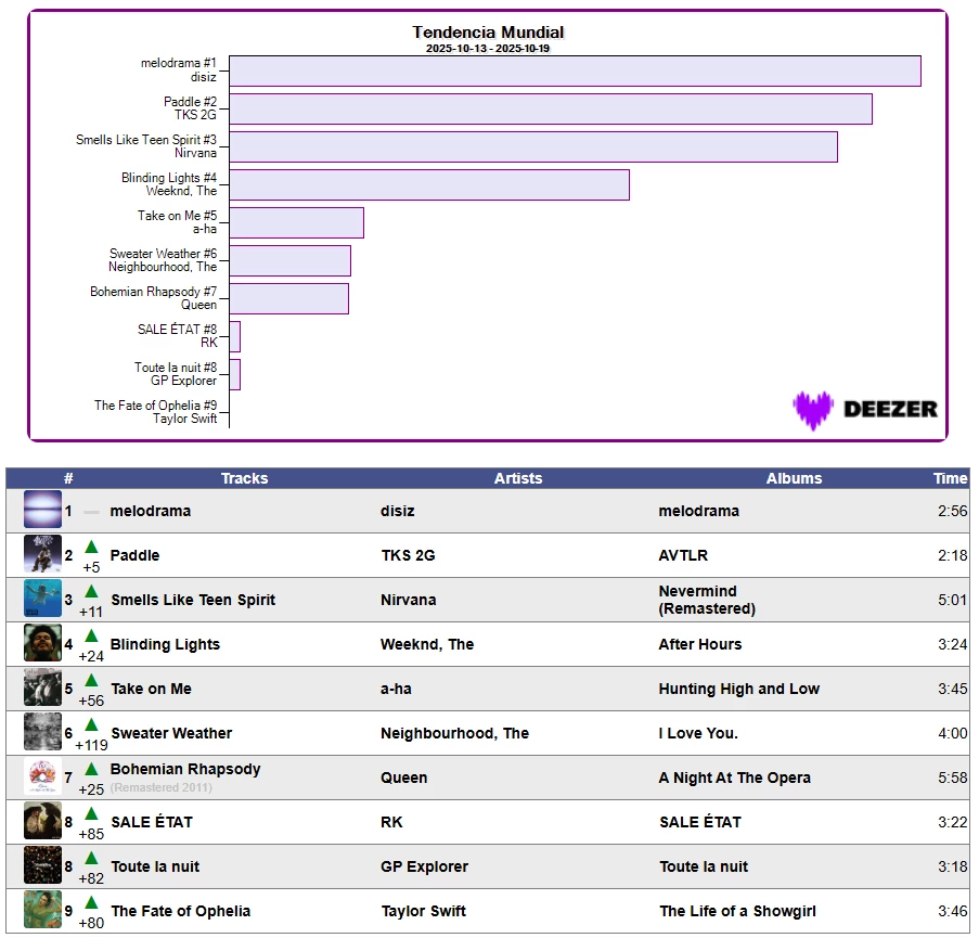 📈👉 Tendencia Mundial en Deezer Semana 42/2025 📈19/10/2025
