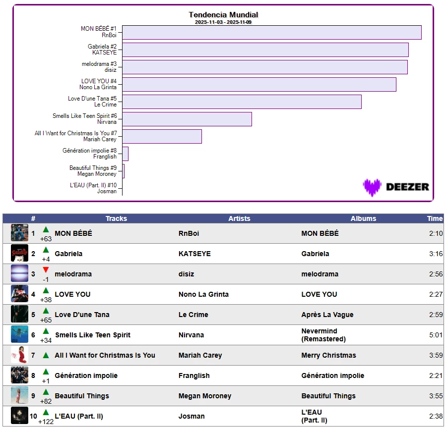 📈👉 Tendencia Mundial en Deezer Semana 45/2025 📈09/11/2025