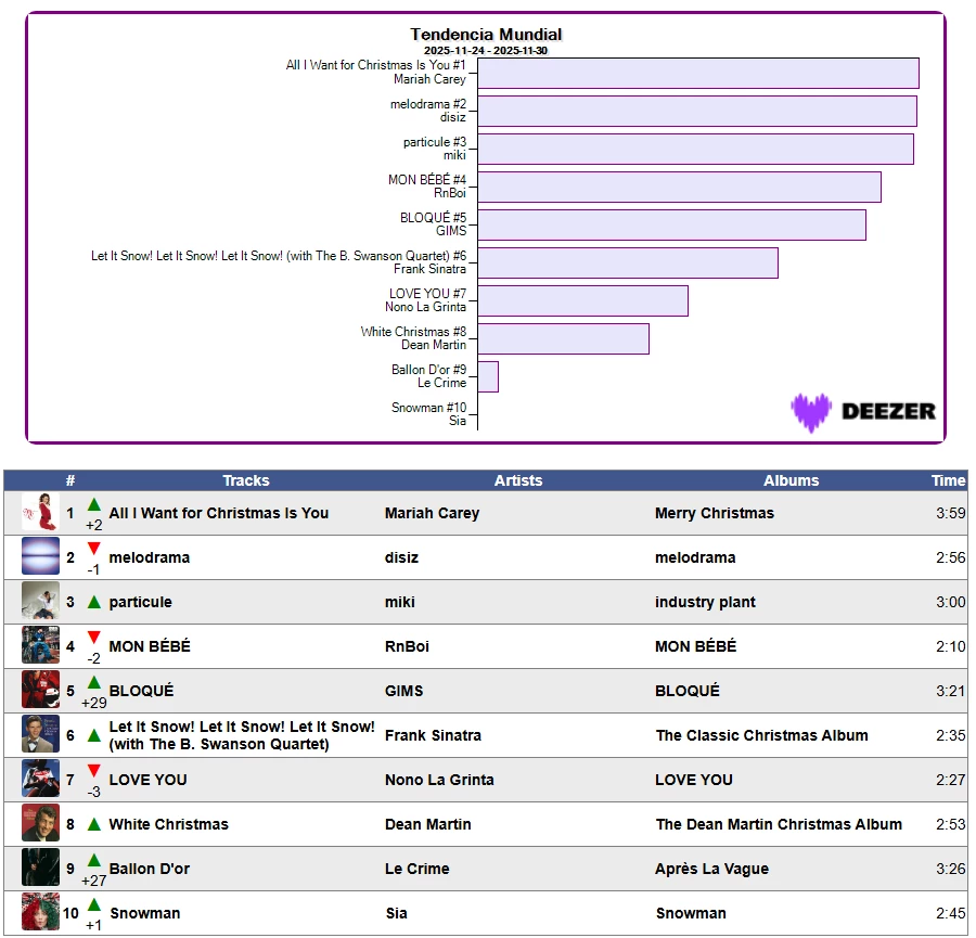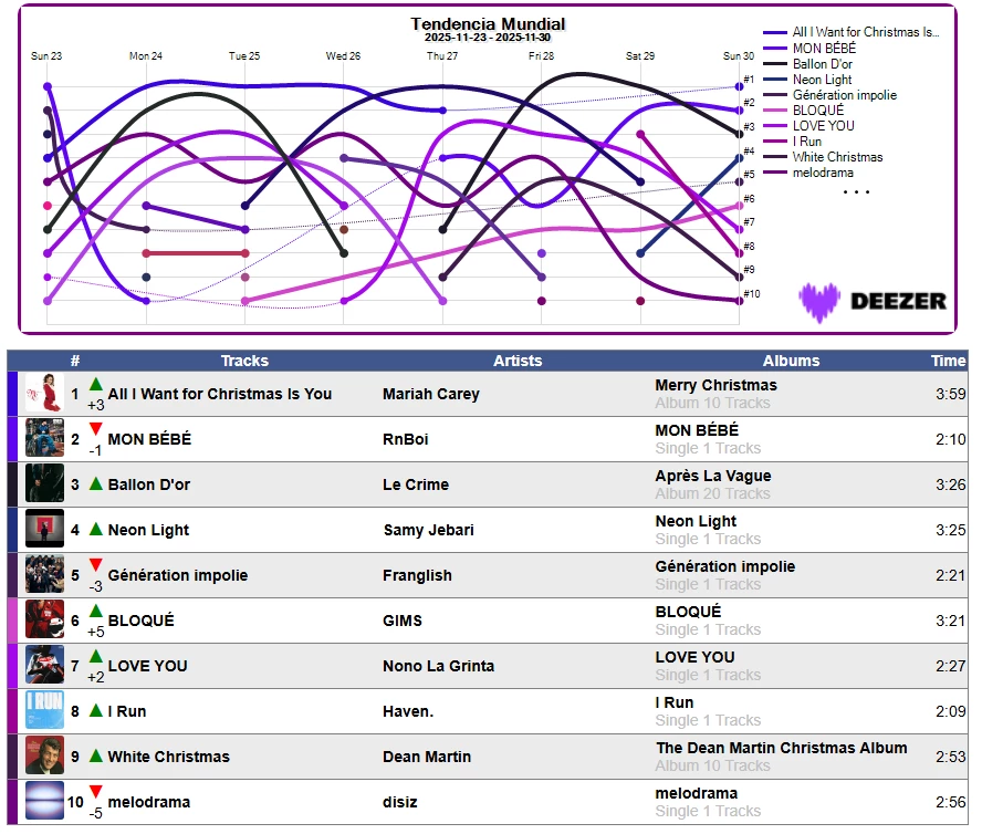 📈👉 Tendencia Mundial en Deezer Semana 48/2025 📈30/11/2025