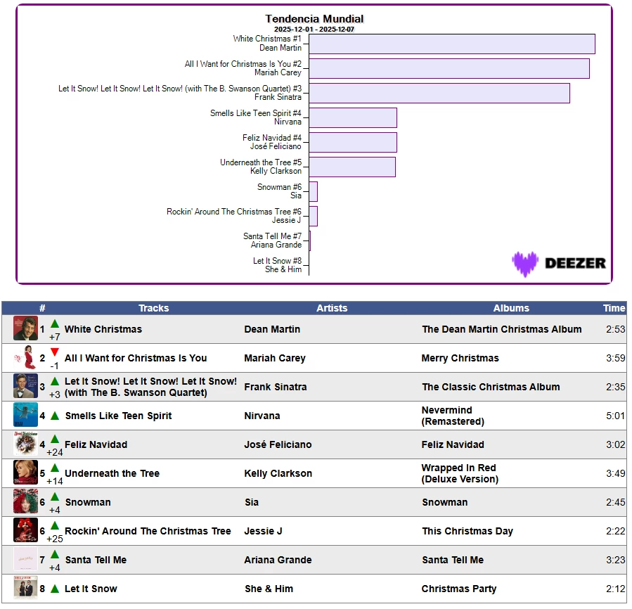 📈👉 Tendencia Mundial en Deezer Semana 49/2025 📈07/12/2025