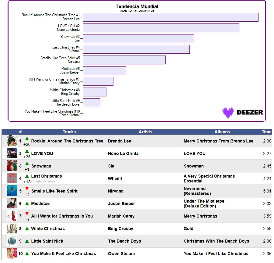 📈👉 Tendencia Mundial en Deezer Semana 51/2025 📈21/12/2025