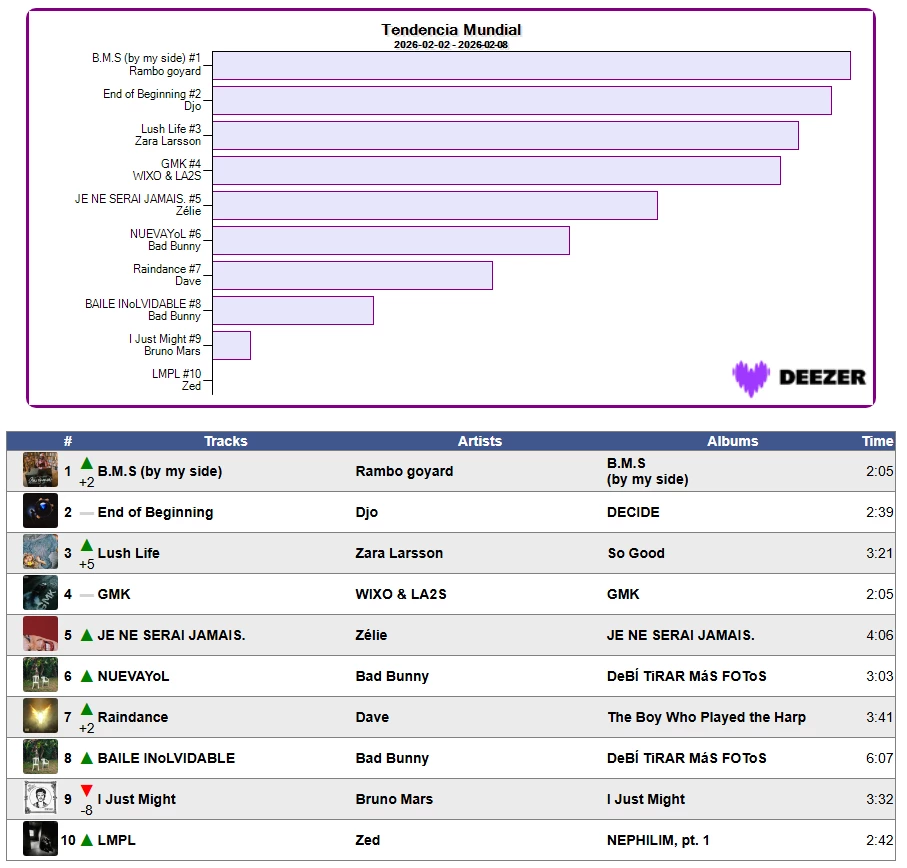 📈👉 Tendencia Mundial en Deezer Semana 6/2026 📈08/02/2026