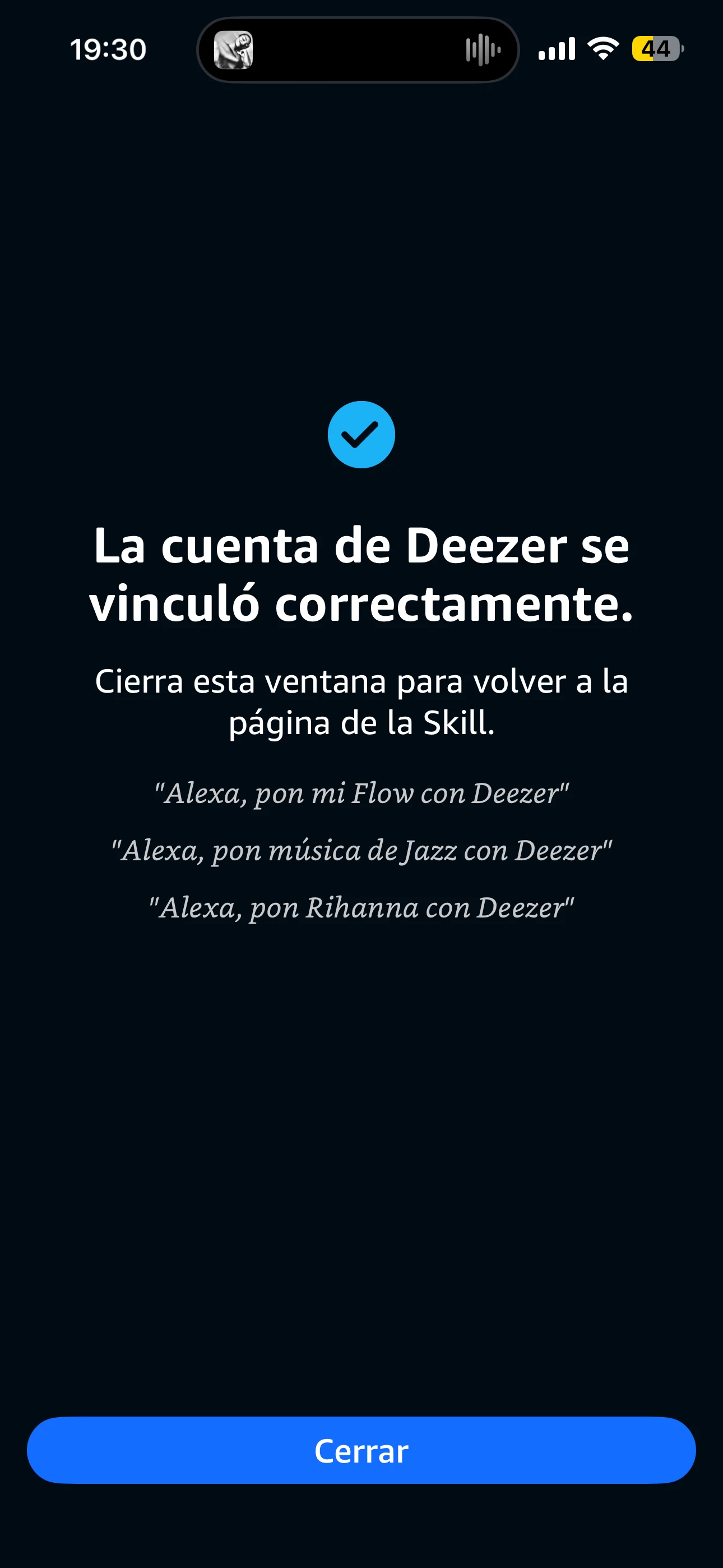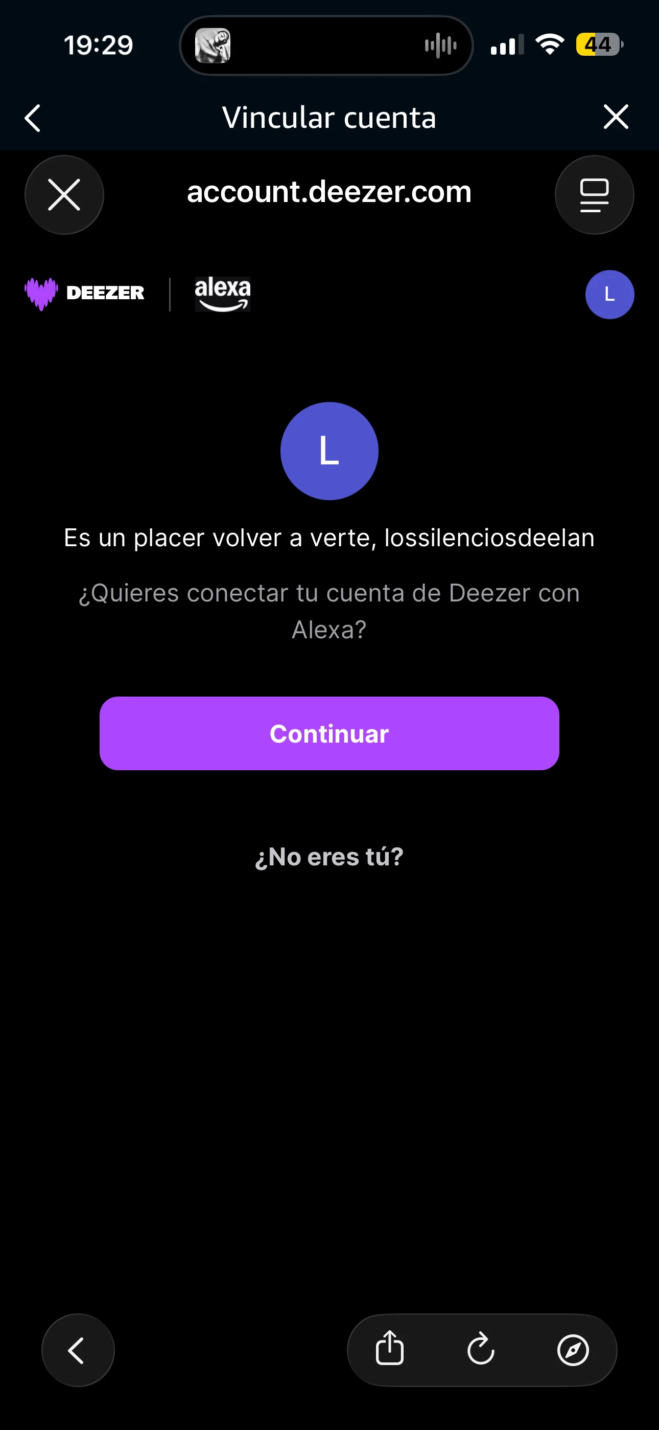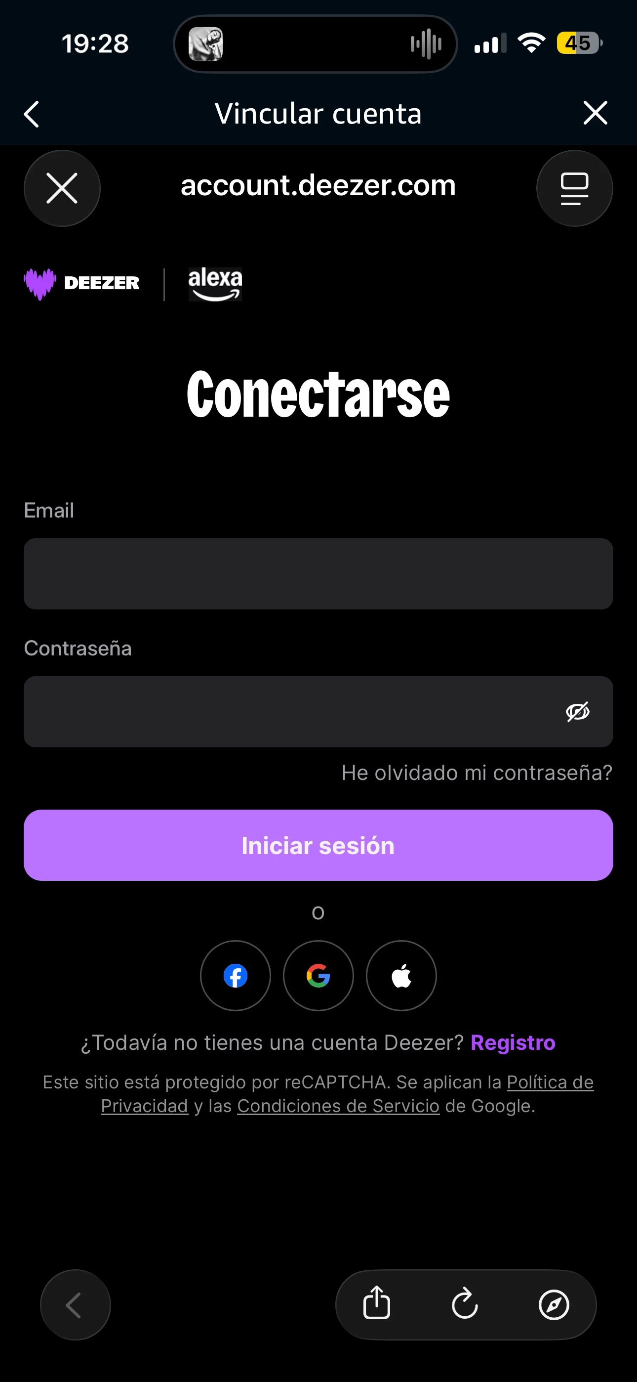 Cuando le das a permitir su uso, te carga la página de Deezer para poner las credenciales...