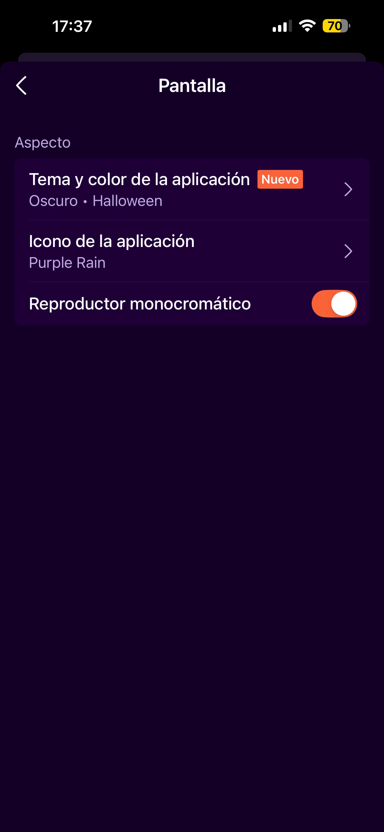 Hola a tod@s! No sé si se han dado cuenta pero desde la última versión beta (tanto en android como en IOS; lo digo porque tengo instalada la aplicación en mis dos teléfonos) ya podemos modificar el color central de la aplicación y el color de los botones de la misma. Igualmente también se puede cambiar el color de la aplicación. Os adjunto pantallazos. Lo podéis encontrar en la sección de Pantalla dentro de Ajustes de la cuenta.