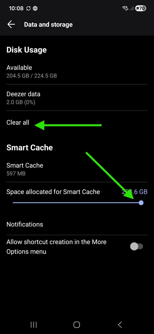 Intenta limpiando el cache y después aumentar el espacio para smart cache