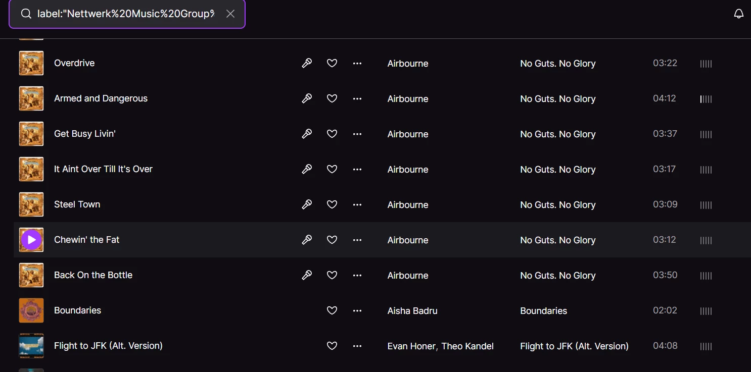 Y así puedes buscar temas y álbumes que estén publicados en dicho sello.