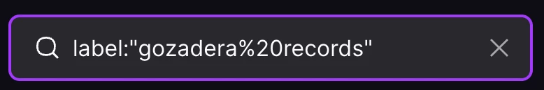 en el cual pueden pegar los parámetros label:"gozadera records"  lo que dará como resultado label%3A%22gozadera%20records%22%0A. Eso se copia al final de https://www.deezer.com/search/ y Voilà!