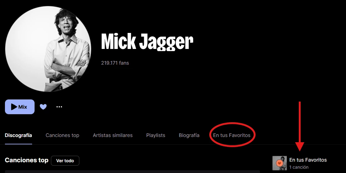 Mi propuesta no es para nada novedosa, ya que todas las plataformas de competencia la tienen. La posibilidad de, desde el perfil del artista, dar play solo a las canciones que tengo en mis favoritos… no el mix del artista.
