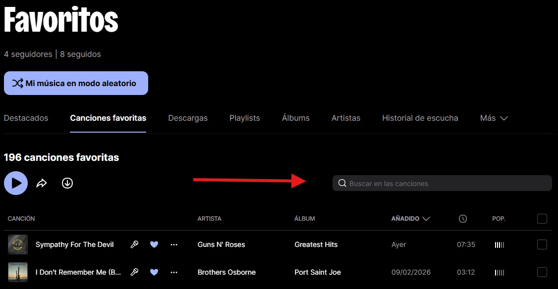 Si, exacto. Yo lo que propongo es que, una vez dentro de tus favoritos, puedas buscar la canción puntual.