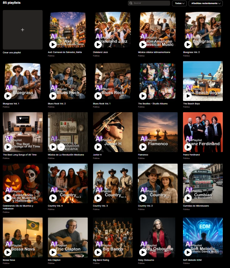 Pero en la cuenta de Playlist AI alli si están organizaditas y con portadas 😊