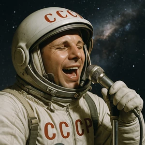 En 1961, Yuri Gagarin, el primer ser humano en salir al espacio, iba totalmente solo a bordo del Vostok 1. No tenía un iPod, ni MP3, ni nada de eso (obvio), pero eso no impidió que cantara un par de canciones rusas populares mientras orbitaba la Tierra. Así que sí, la primera música en el espacio fue a capella y soviética.