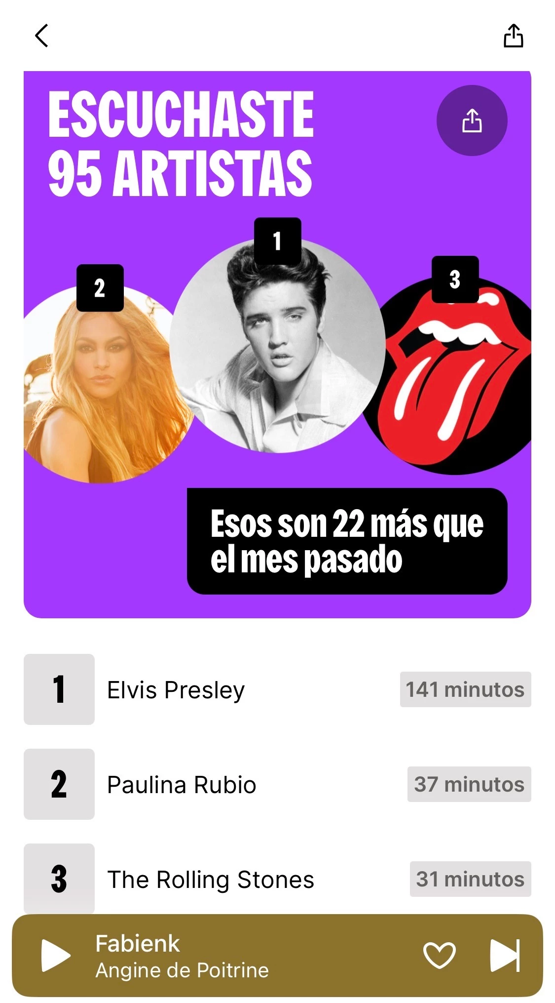 Sí me sale el top de canciones del mes que comparto.
