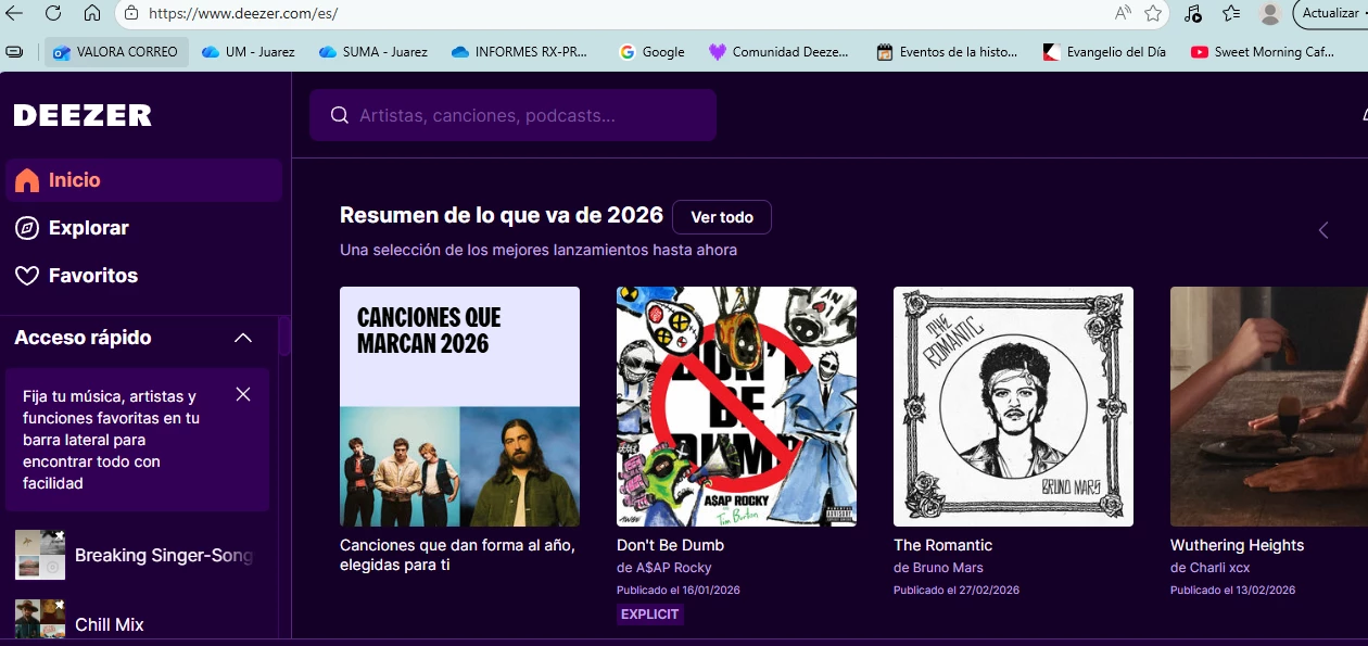 Pues lo he vuelto a buscar y entrando en Deezer desde el navegador me sale…