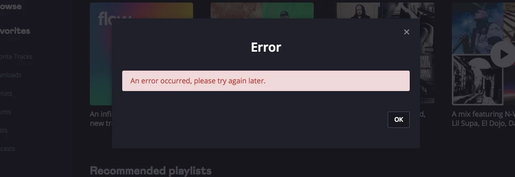hola tengo problemas con la reproducción de deezer hifi, esto es solo con mi lap siempre y cuando haga cambio de track de manera manua aparece. un aviso  INTENTE MAS TARDE!, (no es el internet, ni mi lap) he probado con la cuenta de mis hijos que es por aparte a la mía y no tienen ese problema. Por favor dígame que se puede hacer o si es un problema transitorio que es entendible que se pueda dar.